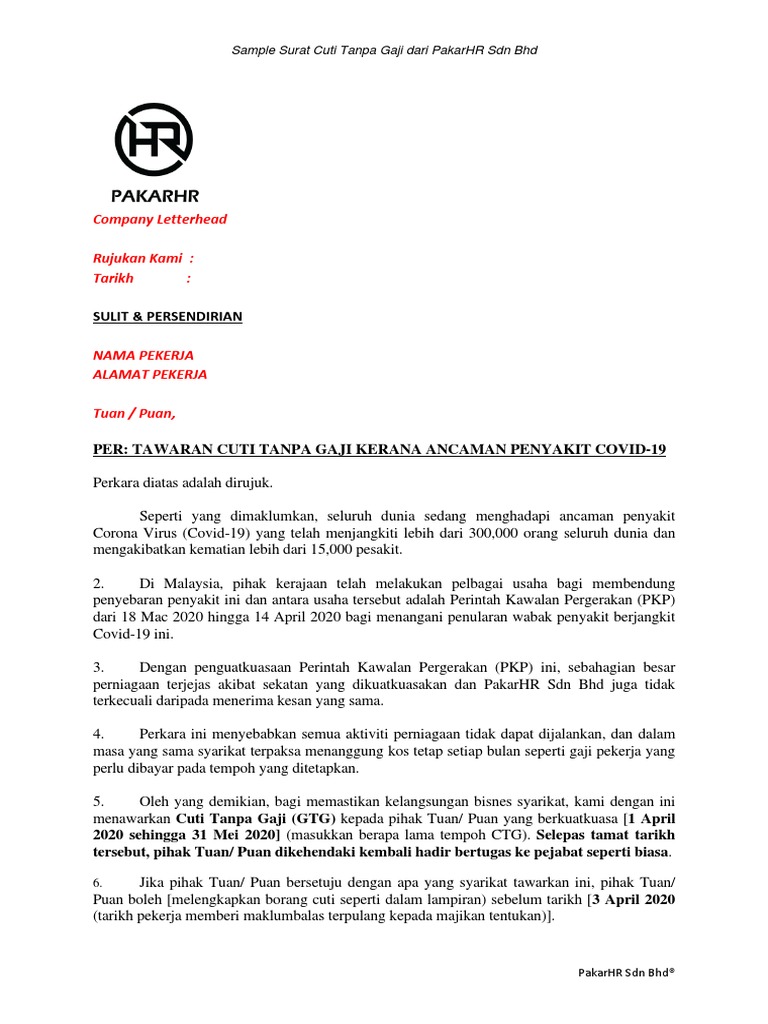Contoh Surat Tanpa Gaji Covid19 Pdf Pdf