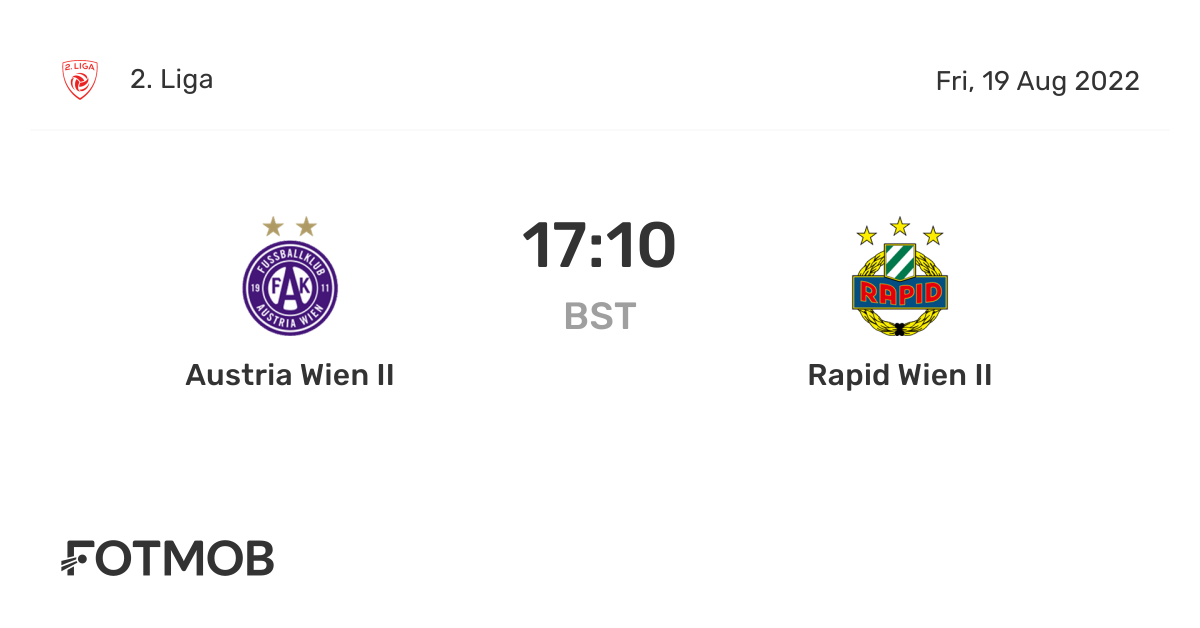 Austria Wien Ii Vs Rapid Wien Ii 2 Liga On Fri Aug 19 2022 16 10 Utc